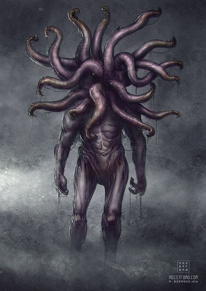 Jennifer walked down the road until she could see a glimmering portal that pulsed with a bright light. Before it were either two or three creatures that were as tall as small office blocks. They had dark leathery skin, massive tree stump legs (as already mentioned), long protruding arms, and their heads were a mass of long writhing tentacles. Jennifer watched them, and instead of feeling scared, she felt angry. She walked towards them until she was sure she had gained their attention.