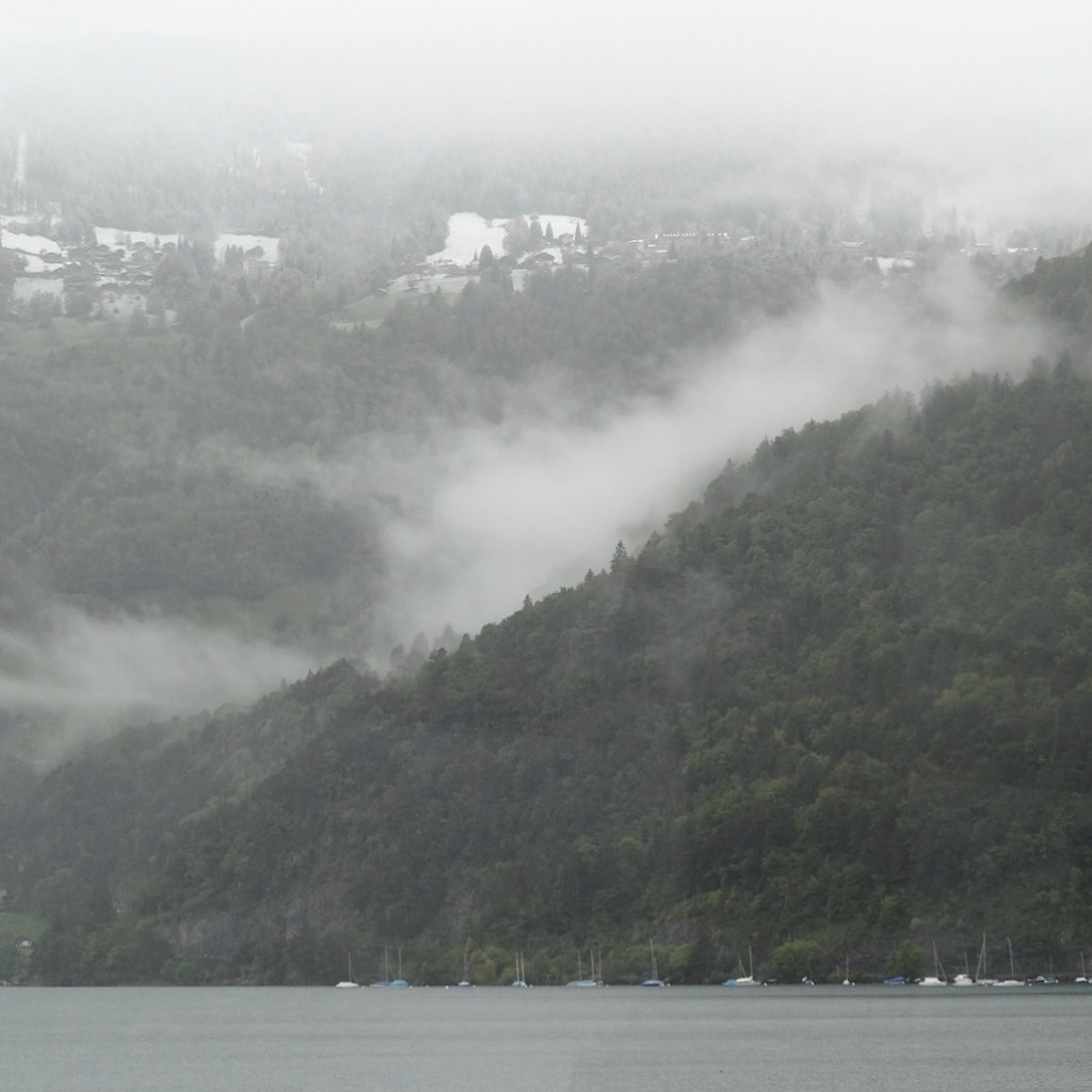 For days this part of Yorkshire has been weather stuck. Stuck under mist, grey clouds and no sign of the sun. Apart from a few dog walks, the kind of weather that keeps you not too far from the fire. Trying to keep warm, I was sat going through some old photos and came across similar greyness in Switzerland. Rather than sat by a fire, here we were sat inside a warm lake boat, with hot drinks and breakfast, watching the world go reassuringly slowly by. Not belting anywhere at 100mph, just leisurely making our way across lake water. Savouring the journey rather than just impatiently trying to get somewhere fast.